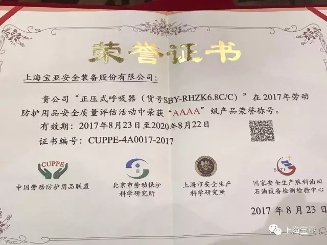 8月22日下午,由中國勞動(dòng)保護(hù)用品聯(lián)盟主辦的追蹤溯源產(chǎn)品評(píng)比活動(dòng)中,寶亞的呼吸保護(hù)類產(chǎn)品獲得4A級(jí)產(chǎn)品6件及3A級(jí)產(chǎn)品4件,主辦方對(duì)獲獎(jiǎng)企業(yè)進(jìn)行了現(xiàn)場(chǎng)頒獎(jiǎng)活動(dòng)。