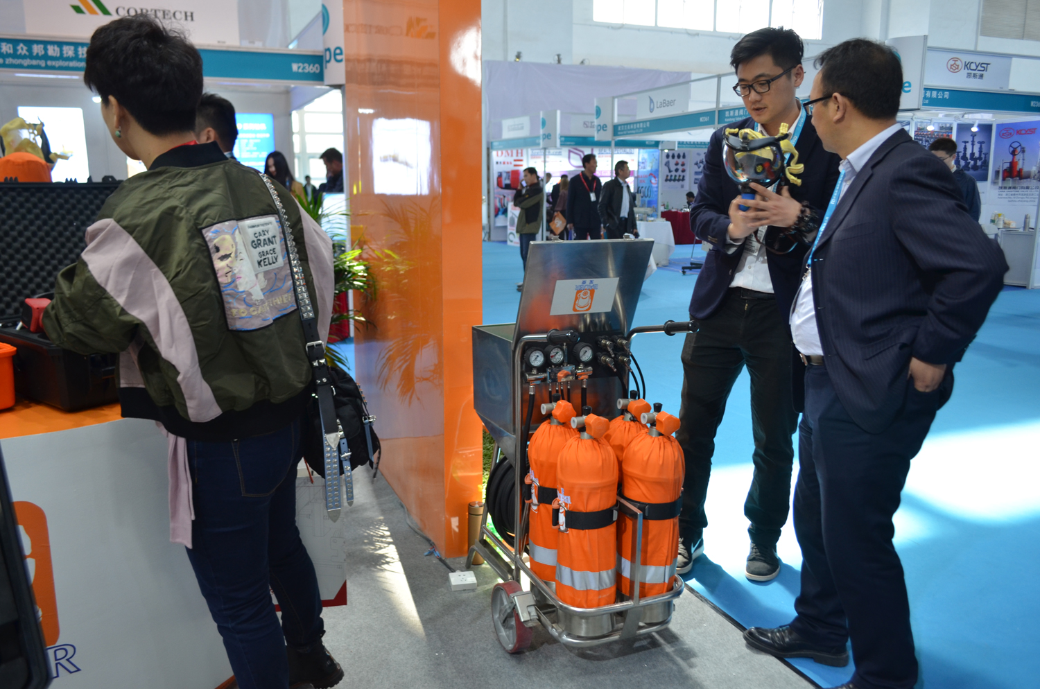 上海寶亞攜正壓式空氣呼吸器、智能空氣呼吸器、緊急逃生呼吸器、防毒通信面罩等多種個(gè)體防護(hù)裝備,向眾多石油行業(yè)用戶展示。