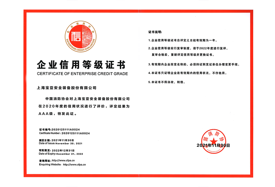 • 中國消防協(xié)會(huì)企業(yè)信用等級(jí)AAA級(jí)