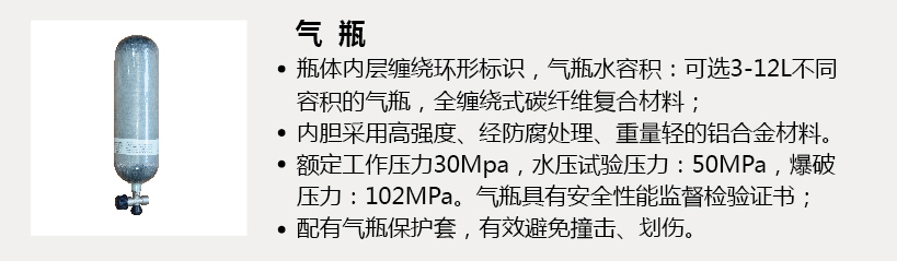 產(chǎn)品執(zhí)行標(biāo)準(zhǔn): GB16556-2007《自給開(kāi)路式壓縮空氣呼吸器》