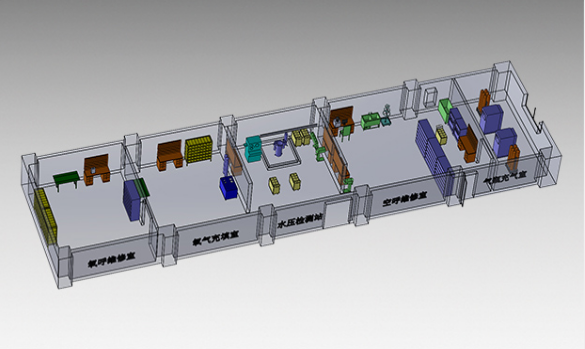 四室一站組成:空氣呼吸器充氣室、氧氣呼吸器充氣室、空氣呼吸器維修室、氧氣呼吸器維修室、氣瓶水壓檢測站。
