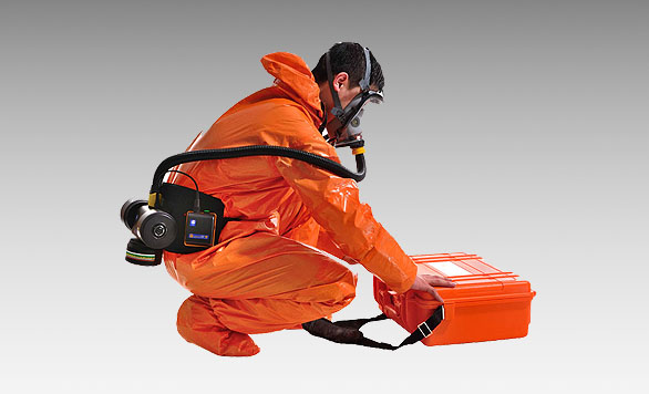 1. 動(dòng)力送風(fēng)過濾式呼吸器是一種強(qiáng)制送風(fēng)過濾的個(gè)人呼吸防護(hù)器材,其工作原理為通過充放式鋰電池驅(qū)動(dòng)風(fēng)機(jī)對(duì)環(huán)境空氣進(jìn)行強(qiáng)制過濾,并且通過導(dǎo)氣管送入面罩,提供清潔的空氣,有效地保護(hù)佩戴人員的面部皮膚,眼部和呼吸道免受毒劑和放射性塵埃的傷害。