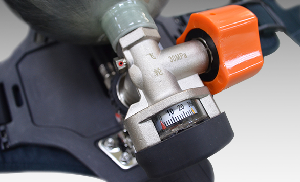 3. 氣瓶閥為右手全握式大三角型設(shè)計(jì),防止打滑,便于戴消防手套時(shí)操作;