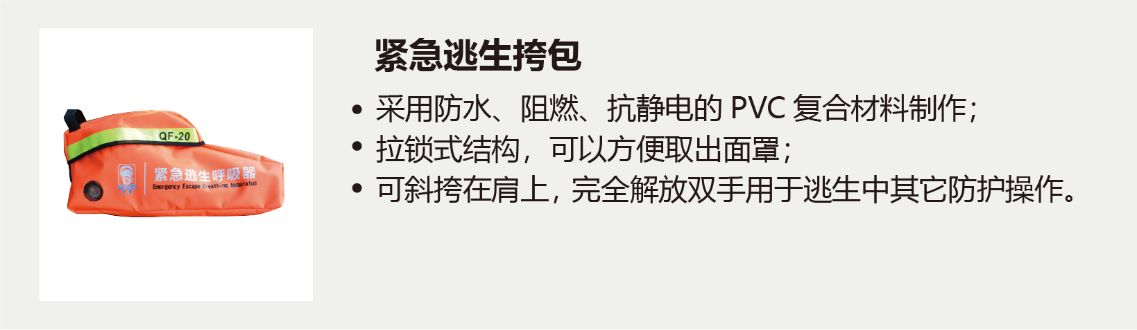緊急逃生呼吸器用于各類突發(fā)事故時(shí),逃生人員用于短時(shí)間逃離危險(xiǎn)氣體及缺氧環(huán)境時(shí)使用。如:火災(zāi)濃煙、煤氣泄漏、工業(yè)氣體泄漏(氨氣,氯氣等)、需要隔絕外界氣體的人工作業(yè)場(chǎng)所。